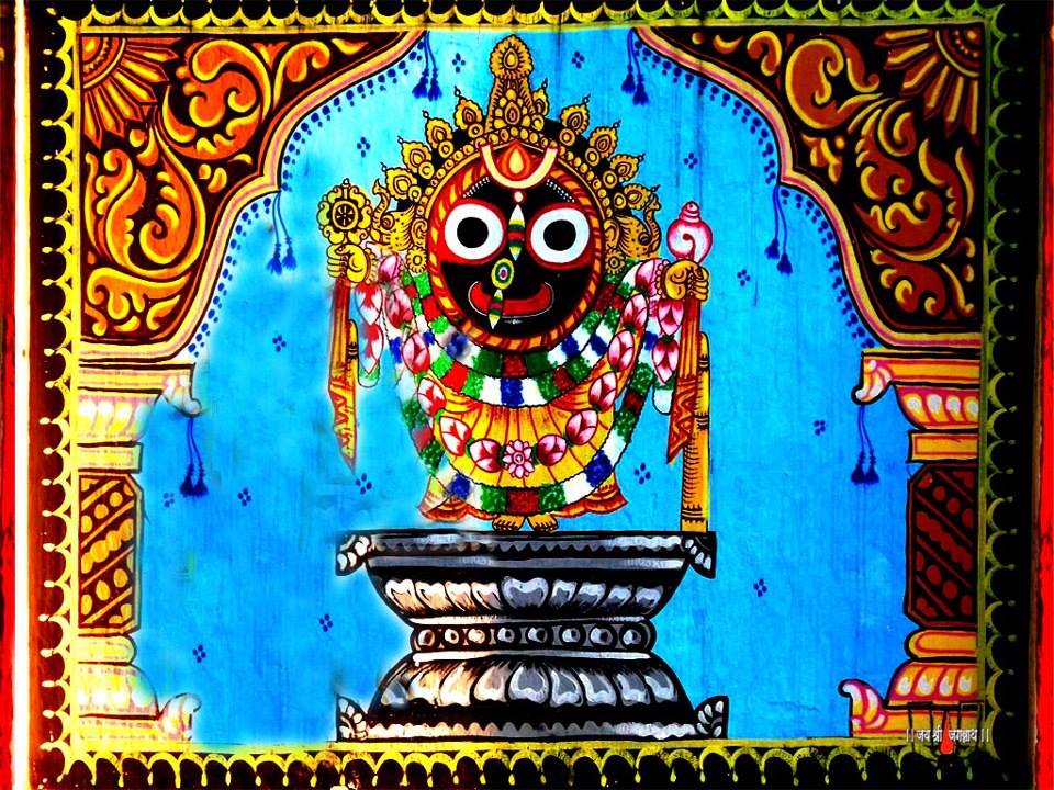 Vishnu appeared in the dream of King Indradyumna and asked him to build a temple for Krishna’s ashes. When he woke up, Indradyumna requested the divine artisan Vishvakarma to create an idol for the temple. Vishvakarma agreed on the condition that while he made the idol no one should disturb him. He locked himself up in a room and started work. After many days, when Vishvakarma did not come out, Indradyumna got impatient and broke down the door. Vishvakarma got angry and disappeared leaving the half finished idol of Jagganath behind him. Indradyumna had a beautiful temple built in Puri where the incomplete idol was placed.